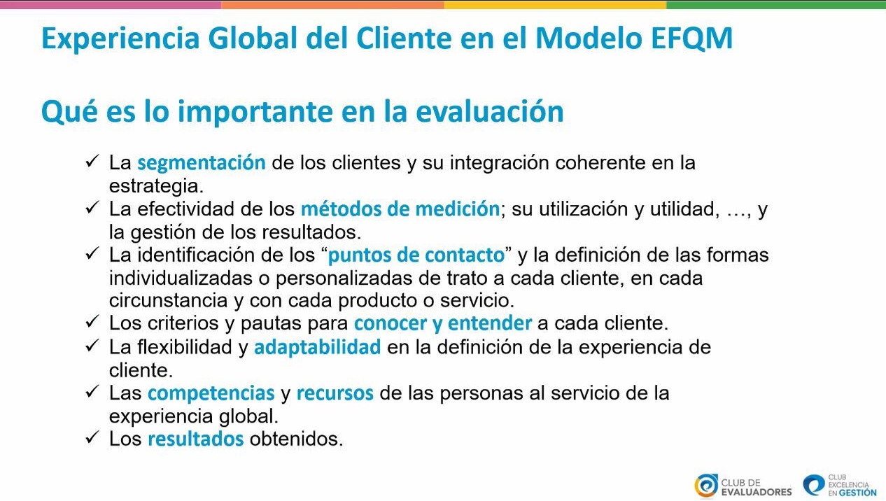 La “experiencia global” del cliente es una cuestión relevante en el Modelo EFQM y un subcriterio que no siempre es fácil de enfocar adecuadamente en una evaluación.
