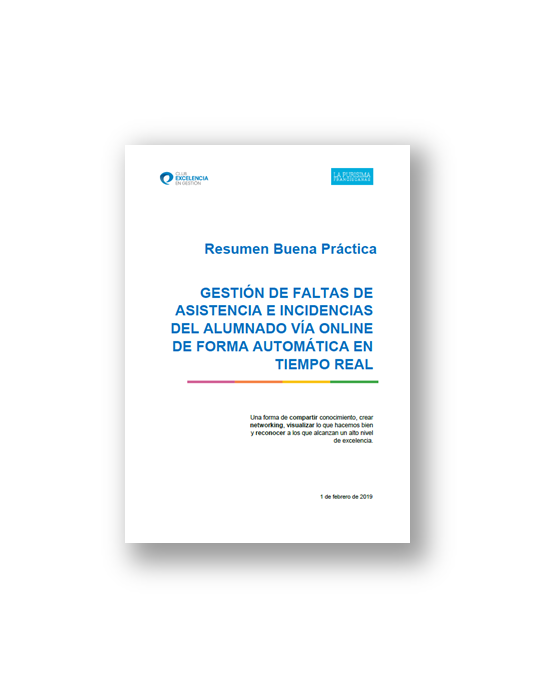 Este documento comparte la experiencia sobre un nuevo modelo que consiste en gestionar las faltas de asistencia e incidencias del alumnado, durante todo el curso, de manera automática, en tiempo real, vía online, ahorrando tiempo y recursos, tanto de personal como económicos.