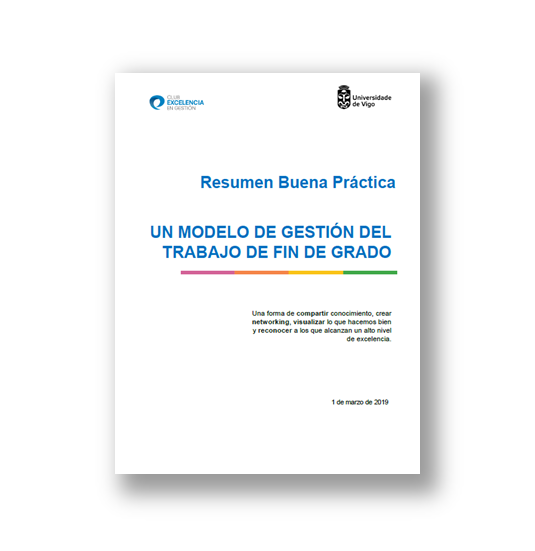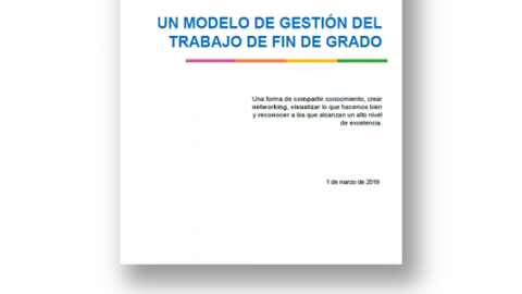 Este documento comparte la experiencia sobre cómo la organización crea un modelo de gestión para los Trabajos de Fin de Grado.