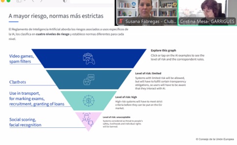 La ponencia estuvo a cargo de Cristina Mesa Sánchez, abogada y experta en regulación de inteligencia artificial de GARRIGUES, quien ofreció una visión estructurada y útil del Reglamento Europeo de IA.
