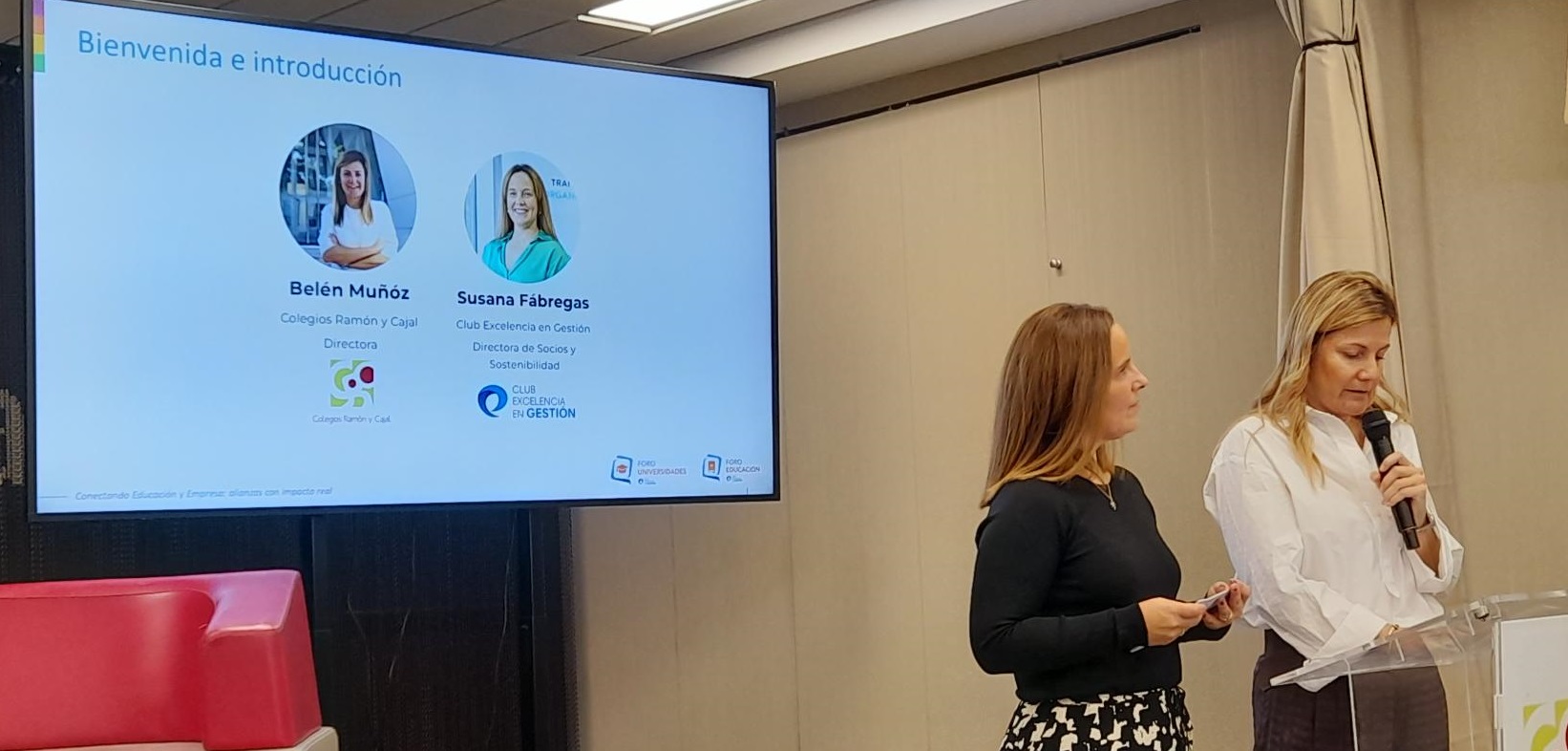 La jornada fue inaugurada por Susana Fábregas, directora de Socios del CLUB EXCELENCIA EN GESTIÓN, junto a Belén Muñoz, directora del COLEGIO RAMÓN Y CAJAL, quien dio la bienvenida a los asistentes y compartió el compromiso del centro con la mejora continua, la innovación educativa y el desarrollo integral del alumnado. Desde el Club, agradecimos especialmente la hospitalidad y generosidad de la entidad anfitriona por abrir sus puertas y compartir su experiencia.