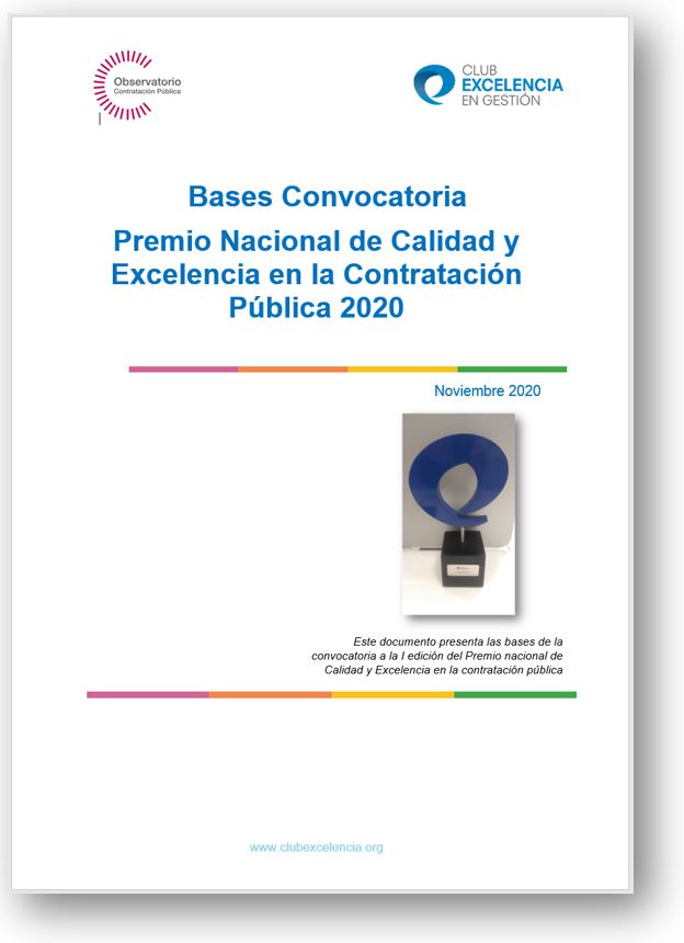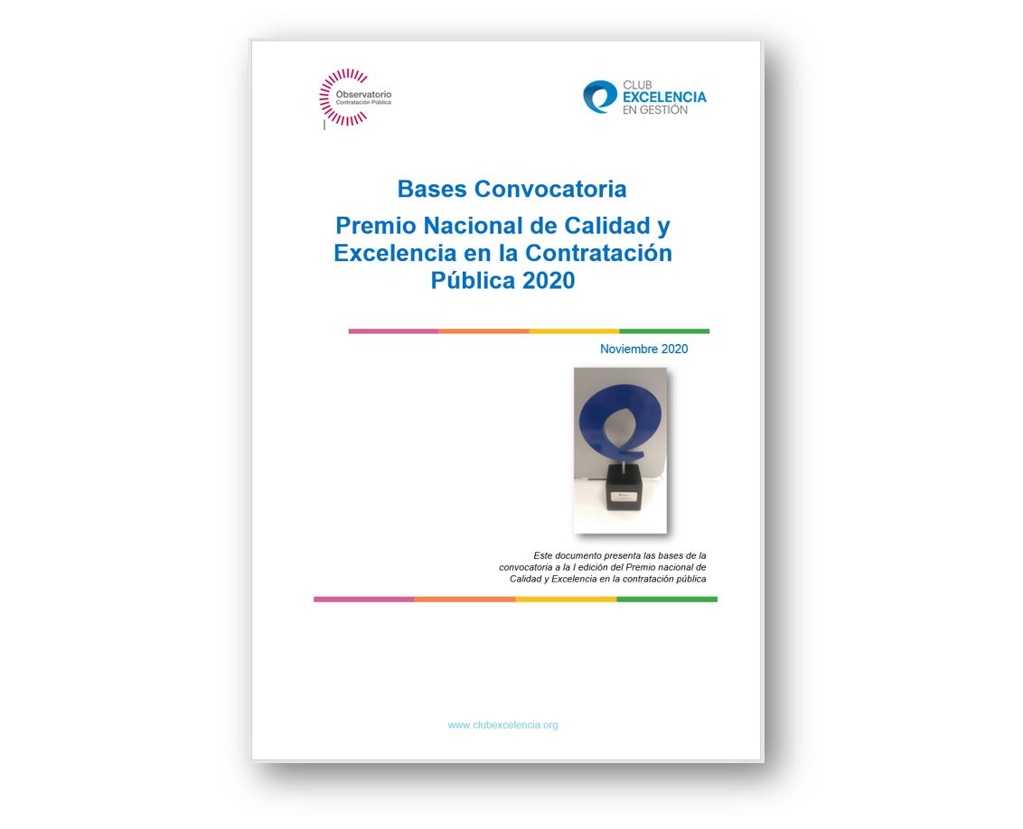 Este premio es fruto de la estrecha colaboración entre el Club Excelencia en Gestión y el Observatorio de Contratación Pública, iniciada en 2018. Tiene como objetivo reconocer a las administraciones públicas que impulsen la calidad y la excelencia en la contratación pública. Cada administración (estatal, autonómica o local), podrá presentar entre 1-3 pliegos de condiciones (publicados entre el 1 de junio de 2019 y 30 de junio de 2020).
