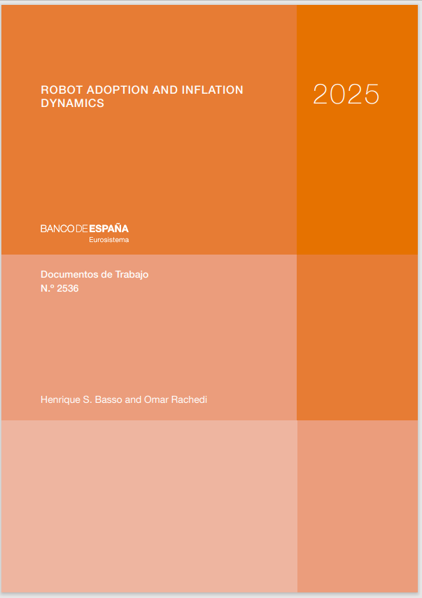 El Documento de Trabajo n.º 2536 del Banco de España, titulado “Robot Adoption and Inflation Dynamics”, examina cómo la automatización incide en la relación entre inflación y desempleo. A partir de datos de áreas metropolitanas de EE. UU., el estudio demuestra que una mayor adopción de robots reduce la sensibilidad de la inflación frente al desempleo, especialmente en regiones con alta sindicalización. Este fenómeno se interpreta como un aplanamiento de la curva de Phillips, donde la automatización debilita el poder de negociación de los trabajadores y, por tanto, la reacción de los salarios ante las variaciones del mercado laboral.