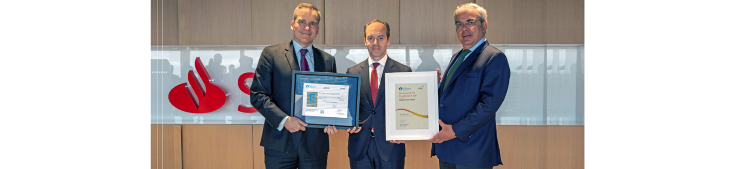 El Club Excelencia en Gestión ha entregado el Sello de Excelencia EFQM 500+ a la filial española de Banco Santander, una de las pocas organizaciones que lo consiguen con más de 650 puntos EFQM. Socio del Club desde 1991, es la tercera vez que se hace con este máximo reconocimiento desde 2016, y en estos momentos es una de las 122 organizaciones españolas que lo ostentan.
