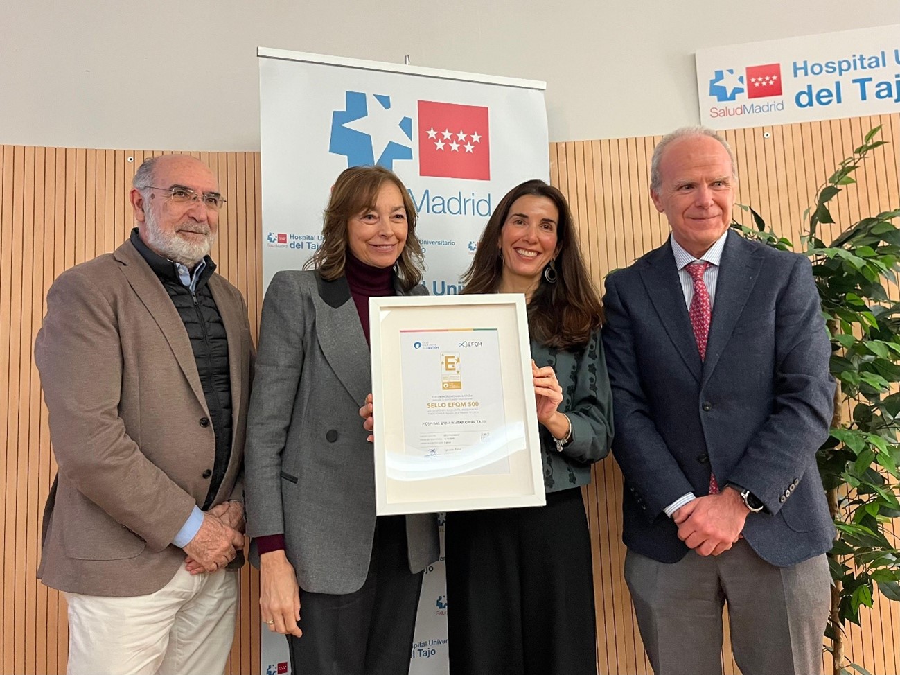El pasado 26 de enero, el Hospital Universitario del Tajo logró el Sello EFQM 500. Un centro público de la Comunidad de Madrid situado en Aranjuez, que tras ser sometido por primera vez a un evaluación EFQM, ha obtenido esta calificación. El galardón no sólo reconoce la excelencia, sino la apuesta por la innovación y la sostenibilidad, centrada en los pacientes y sus familias, y el impulso al talento de sus profesionales, creando en el hospital un entorno más humano. El reconocimiento obtenido no es el fin de un proyecto, sino el comienzo de un proceso que asume nuevos retos de mejora continua de cara a la siguiente evaluación, en 2028.