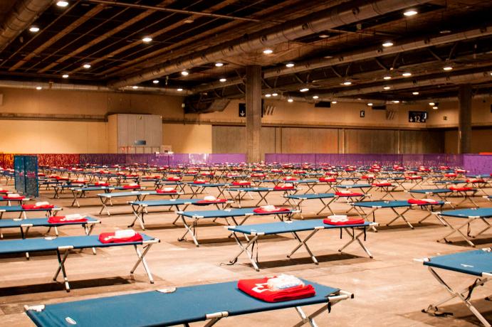 A ello se añade la creación de un albergue de emergencia para personas sin hogar en otro de sus pabellones, que ya cuenta con 150 plazas y en breve tendrá otras 150 más. Una fórmula más para evitar nuevos contagios en la que ha colaborado Cruz Roja con el fin de desahogar un poco más los centros sanitarios.