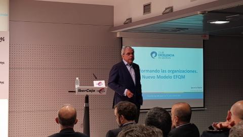 En la jornada también intervino el Director de Marketing y Estrategia Digital de Ibercaja, Nacho Torre, para explicar cómo ha sido la ruta hacia la excelencia de esta entidad financiera. Lleva desde 2005 trabajando con el Modelo EFQM, y desde 2007 ha realizado cinco evaluaciones periódicas que le han servido para obtener en todas ellas el Sello EFQM 500+. En algunos casos superando la barrera de los 600 puntos.